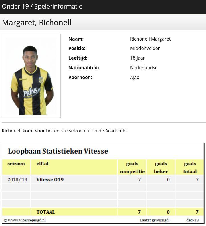 Margaret vertelde na de training in Portugal: "Ik ben hartstikke trots op het contract. Het volgende doel is om te debuteren bij Jong Vitesse en daarna hopelijk zo snel mogelijk in het eerste. Maar eerst hier een goede indruk achterlaten."