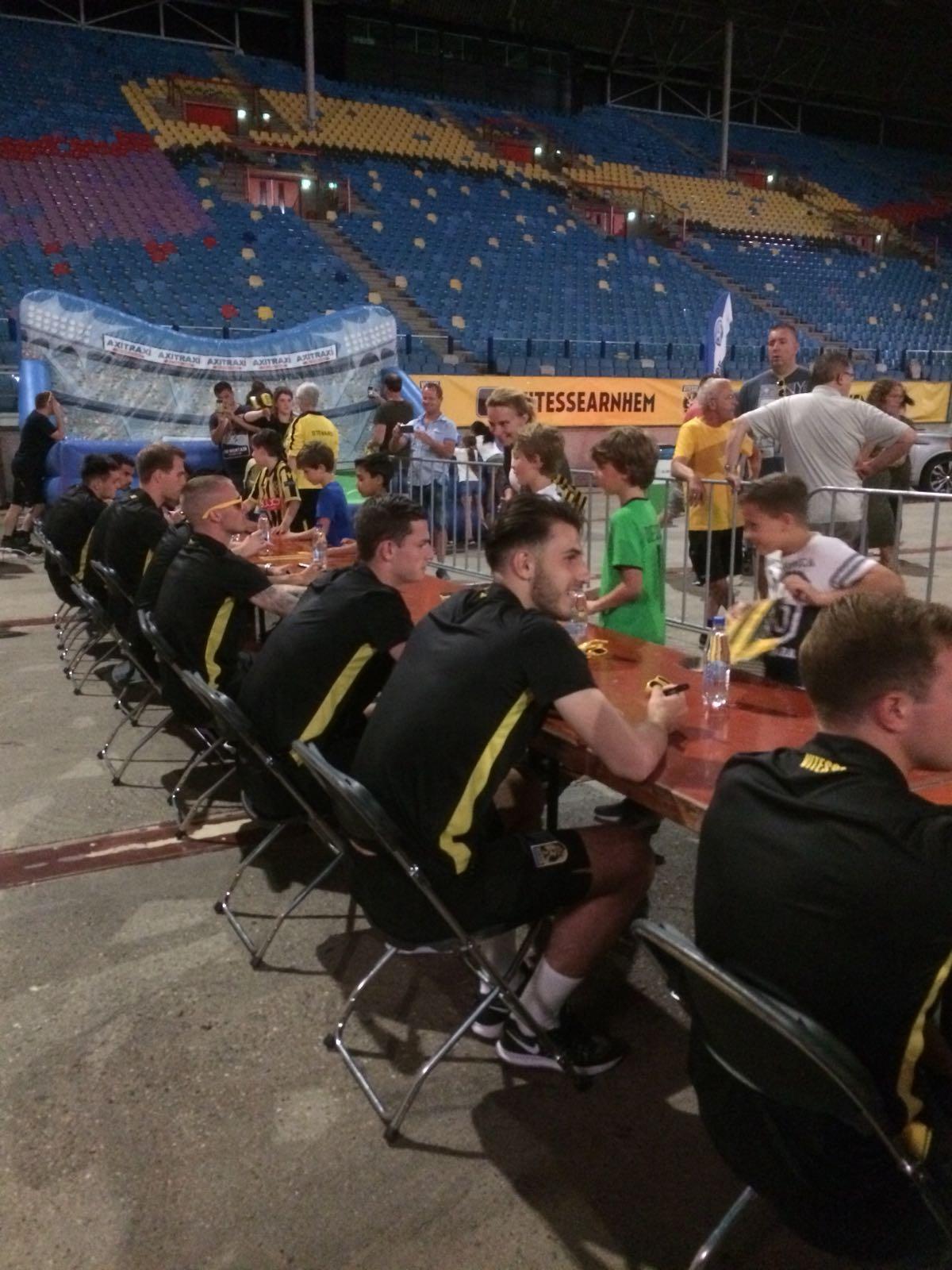 Op de foto met Vito, schieten op de voetbalwand of handtekeningen scoren van de Vitesse-spelers. Het kon allemaal tijdens de jaarlijkse Vitesse Kids Club Dag in Gelredome.
