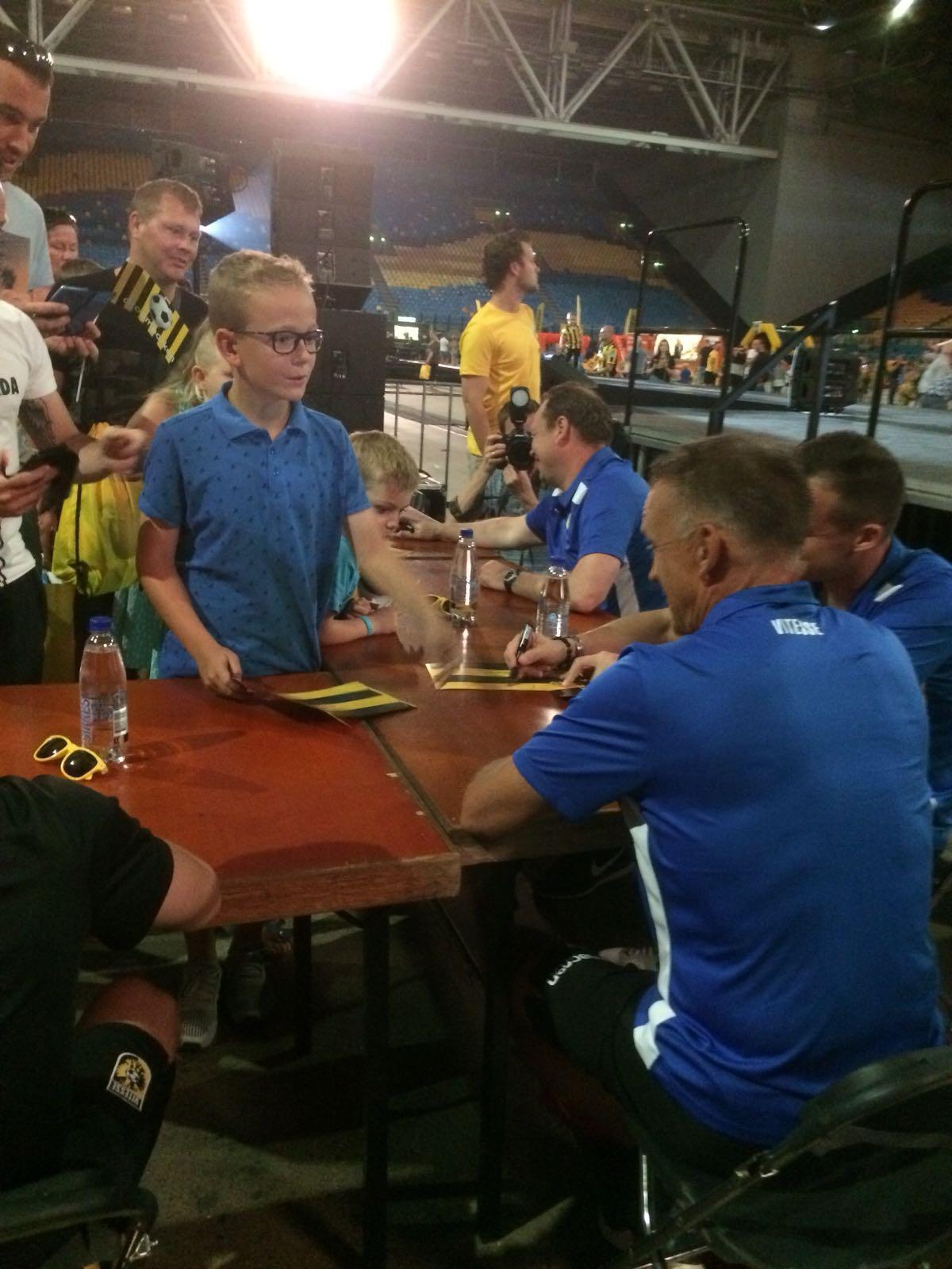 Uiteraard kwamen de leden van de technische staf en alle spelers ook een kijkje nemen tussen de trainingen door. Ze deelden volop handtekeningen uit en gingen met iedereen op de foto.