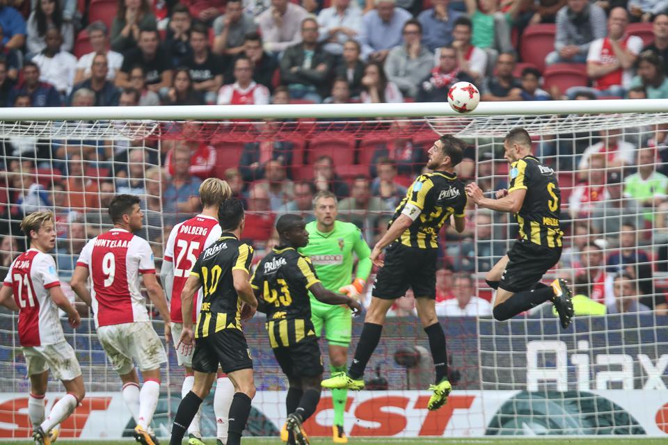 Omdat Ajax geen grip kreeg op Vitesse wisselde coach Marcel Keizer al snel. Hij bracht Kasper Dolberg voor Matthijs de Ligt, die na een botsing met Tim Matavz knock-out was gegaan. Ajax ging met drie verdedigers spelen.