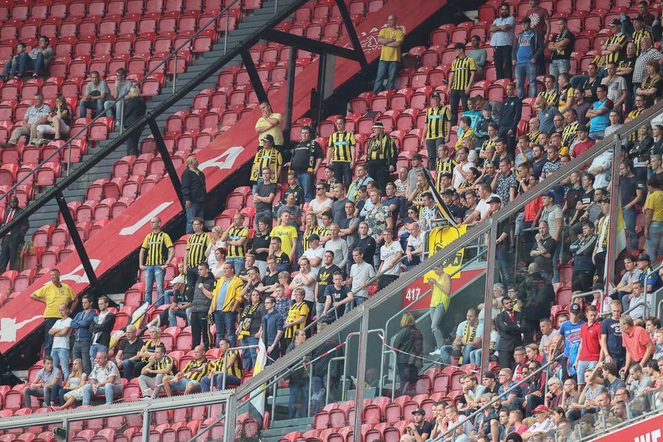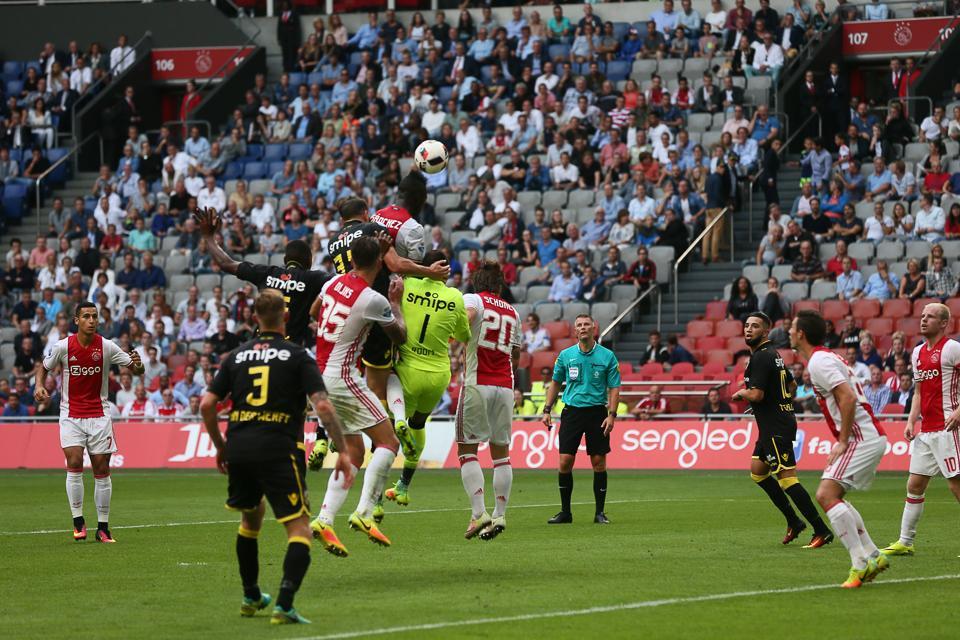 Het was een vermakelijke eerste helft in Amsterdam waarin Vitesse en Ajax aan elkaar gewaagd waren. Het spel golfde heen en weer en beide ploegen kregen enkele goede kansen op het openingsdoelpunt. Zo zweefde Eloy Room al na vijf minuten naar de bovenhoek om het schot van Gudelj onschadelijk te maken. Dat deed de Arnhemse goalie twee minuten later nog eens, dit keer op de inzet van Younes. De ploeg van Henk Fraser was aan de andere kant minstens zo gevaarlijk.
