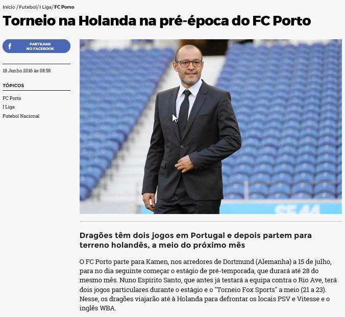 Nuno Espírito Santo, que antes já testará a equipa contra o Rio Ave, terá dois jogos particulares durante o estágio e o "Torneio Fox Sports" a meio (21 a 23). Nesse, os dragões viajarão até à Holanda para defrontar os locais PSV e Vitesse e o inglês WBA.