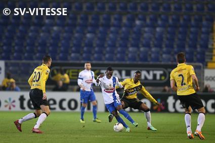 Opstelling Vitesse: Room, Diks, Kashia, Van der Heijden, Achenteh; Vejinovic, Qazaishvili, Pröpper; Olinik, Traore, Labyad