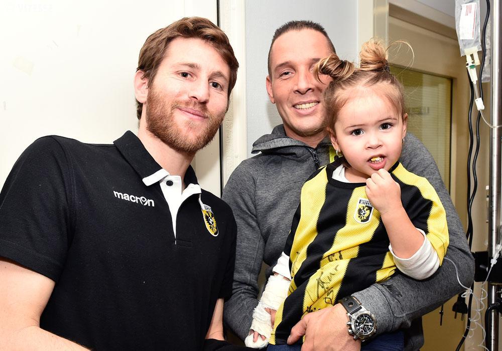 De groep Vitesse-trainers en -spelers werden ontvangen in de geel-zwart versierde speelkamer op de kinderafdeling. Na een voorstelrondje vroegen de kinderen alles wat zij wilden weten van hun helden. Zo antwoordde Kevin Diks dat hij, als hij geen profvoetballer zou zijn geworden, graag advocaat was geweest. Sheran Yeini kreeg de lachers op zijn hand toen de Israëlische middenvelder danste als Michael Jackson. Even later liet Yeini zijn danskunsten weer zien toen hij werd gevraagd te doen alsof hij een doelpunt aan het vieren was.