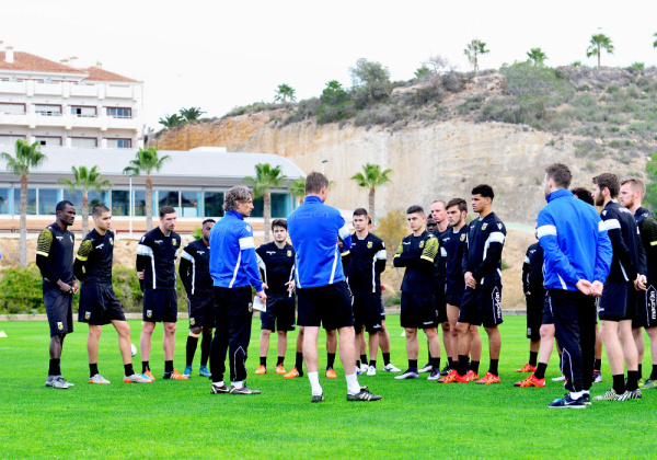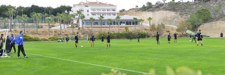 Na een korte rondo, een pass- en afwerkvorm en drinkpauze volgden vijf partijtjes. Op het gifgroene veld werd elf tegen elf gespeeld en daar ging het er fanatiek aan toe. Mooie acties, scherpe tackles en doelpunten waren te zien onder de Spaanse zon. Na bijna twee uur zochten de spelers het hotel weer op. Vanmiddag staat in Orihuela Costa wederom een training op het programma.