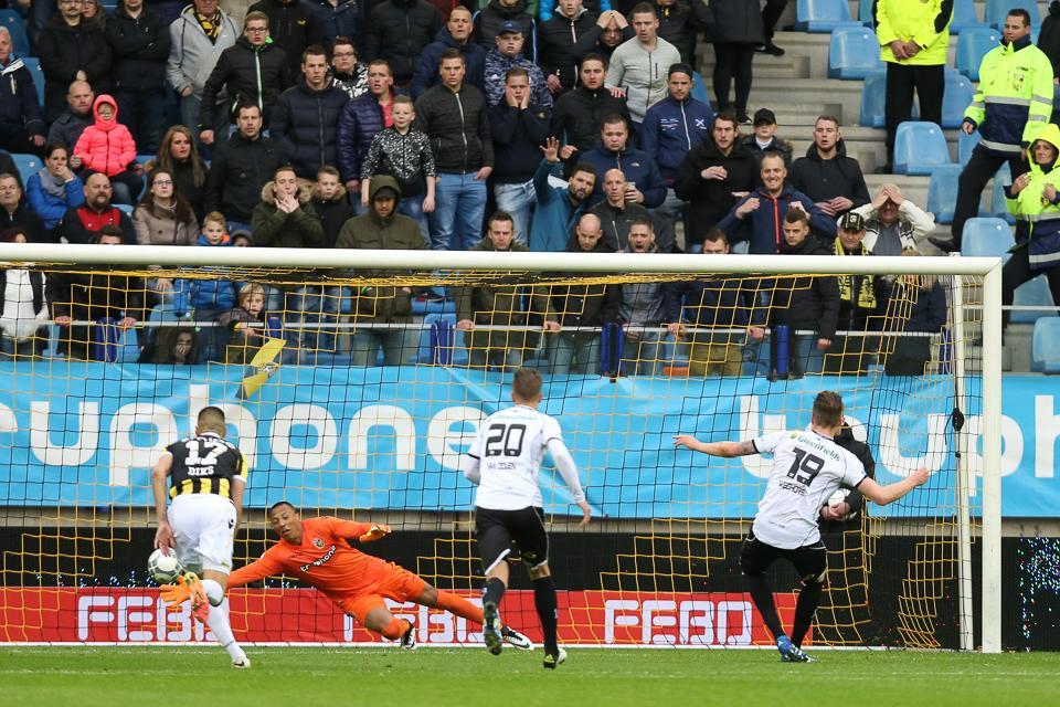 Desondanks was duidelijk te zien dat de verhoudingen anders lagen dan voor rust: zo kreeg ook Yeini een goede schietkans, die net naast het doel verdween.Naarmate de tijd begon te dringen voerde Heracles de druk op, maar daardoor ontstond er ook ruimte voor de Arnhemse counter: zo krulde Valeri Qazaishvili de bal net naast. De Vitesse-verdediging vertoonde weinig haarscheurtjes, maar toch kwam de gelijkmaker er tien minuten voor tijd: Yeini kreeg de bal ongelukkig op zijn arm, waarna Weghorst vanaf elf meter raak schoot.