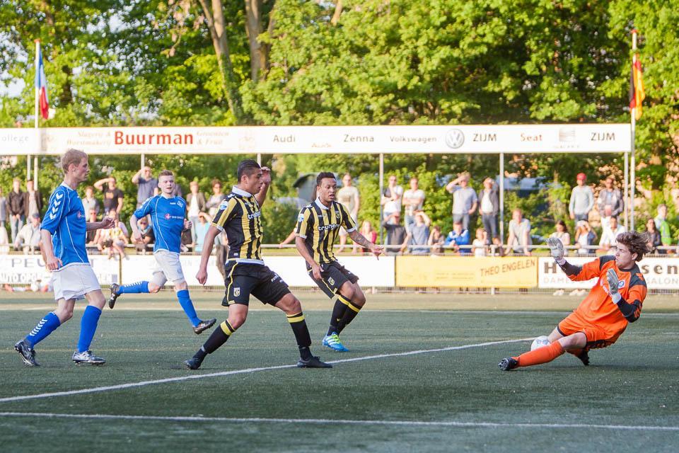 Daarna ging het snel. Maikel van der Werff krulde een vrije trap prachtig in de linkerhoek. De keeper van RKHVV was kansloos, 1-3.