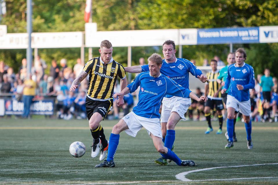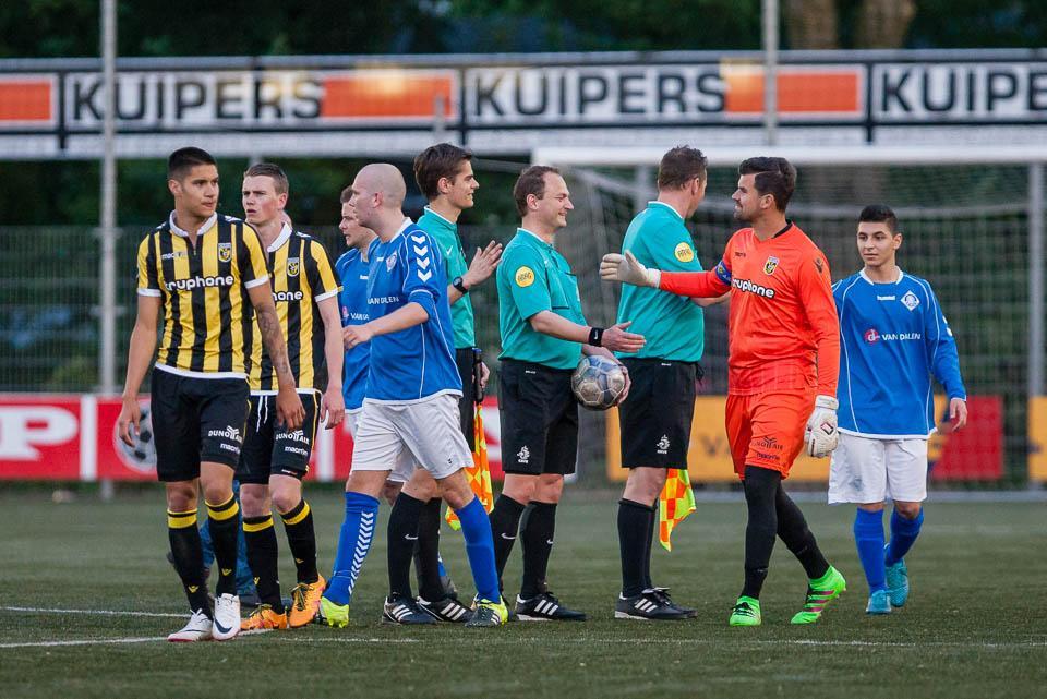 RKHVV kon in de eerste helft aardig meekomen en in de tweede helft kwamen de Huissenaren zelfs gelijk. Mark Schulte was de doelpuntenmaker voor RKHVV, 1-1.
