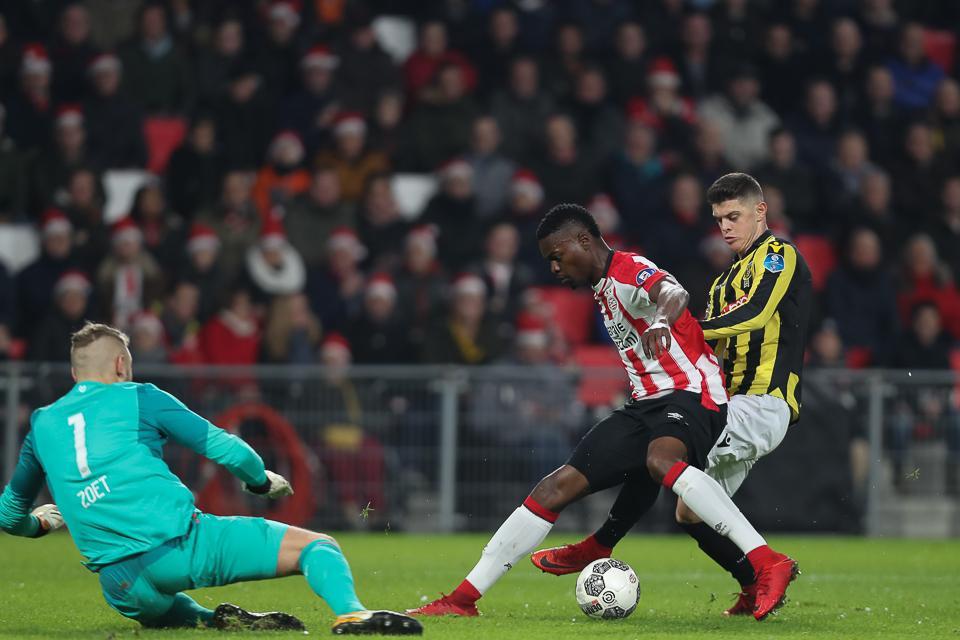 Na een half uur sloeg de Gelderse equipe vervolgens toe. Eerst kreeg Rashica een levensgrote kans. Kon Jeroen Zoet daar nog redding brengen, even later kon de keeper geen treffer van Matavz meer voorkomen. De Sloveen was het eindstation van een counter. Lassana Faye stuurde de bal diep, waarna Bryan Linssen PSV-back Joshua Brent wegdrukte en de assist kon verzorgen: 0-1.