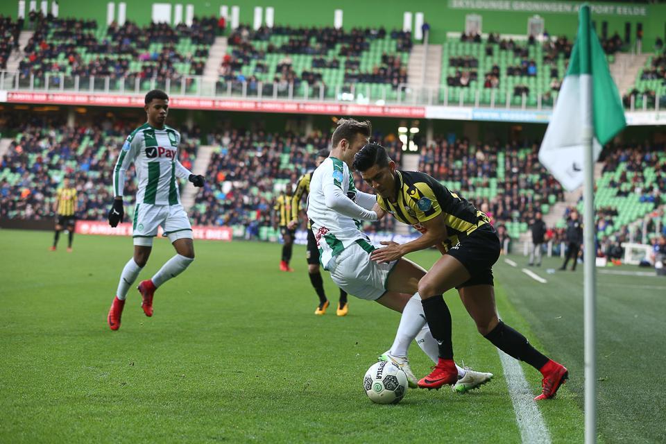 Zondag 10 februari, 14:30 uur, Hitachi Capital Mobility Stadion te Groningen, FC Groningen – Vitesse, de 21e speelronde van het Eredivisieseizoen 2018/'19.